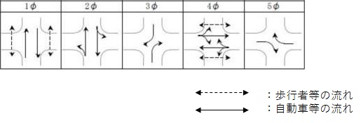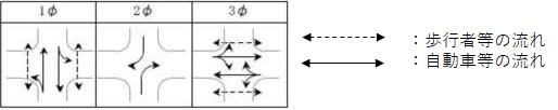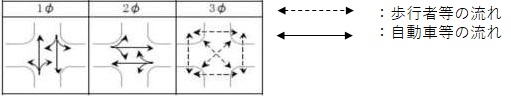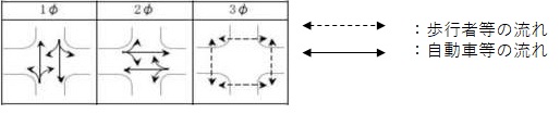 歩行者等と自動車等が横断歩道等での交錯が全くない又は少なくするするための信号制御です。